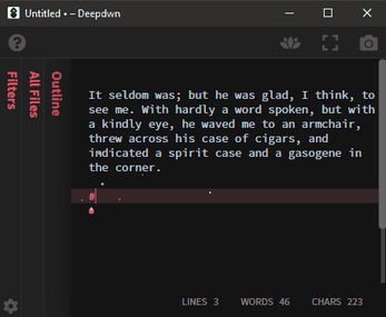 I happened upon it accidentally, but what a lucky accident it was. Deepdwn is a great ZEN-style text processor that has made many a gloomy night a writing exercise <3